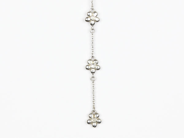 Vedhæng med sølvkæde, blomster og diamanter
